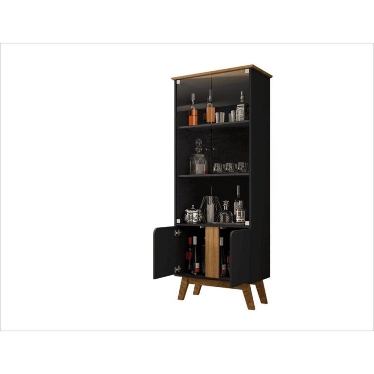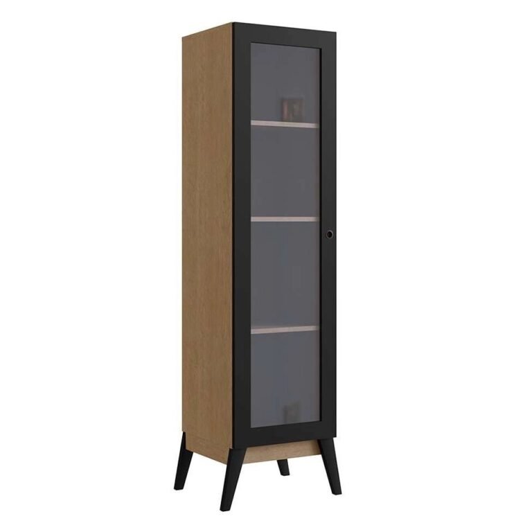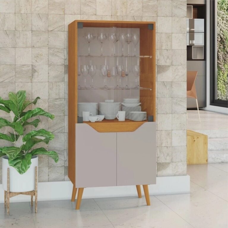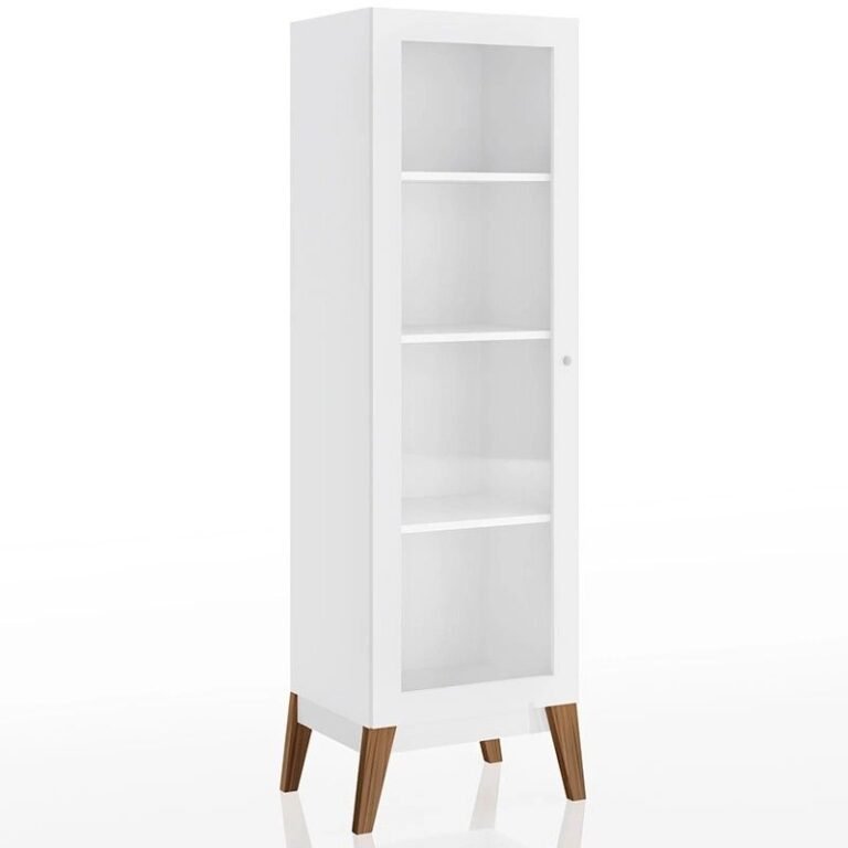 Cristaleira Retrô Portas de Vidro Fecho Magnético Pés Madeira Madri Móveis Bechara