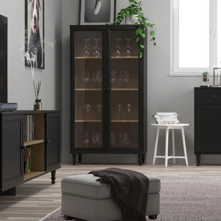 Cristaleira Estante Para Livros Ditália 2 Portas Vidro Preta