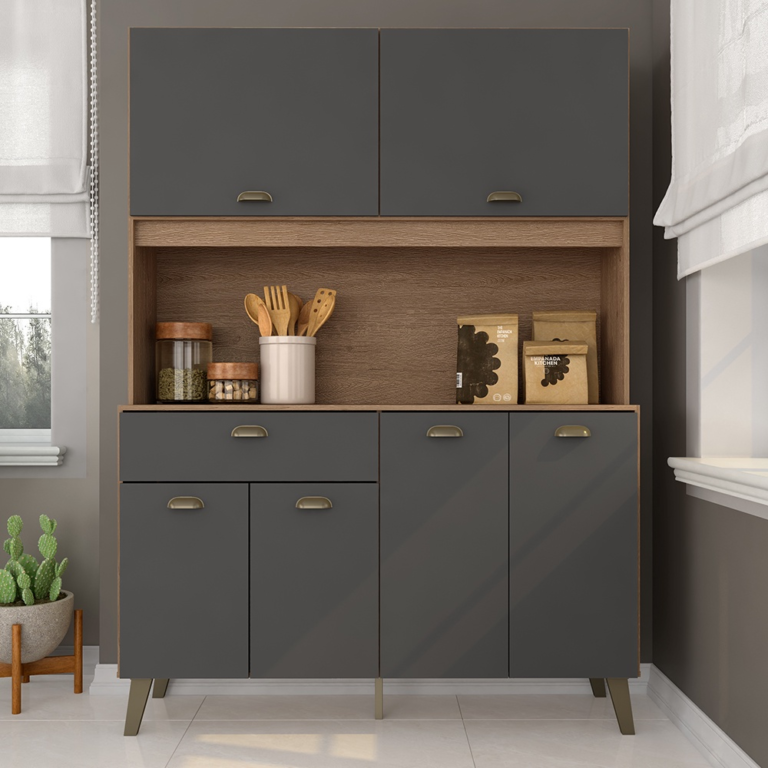 Armário Kit De Cozinha Emily Retro 6 Portas Carvalho/grafite – Ma