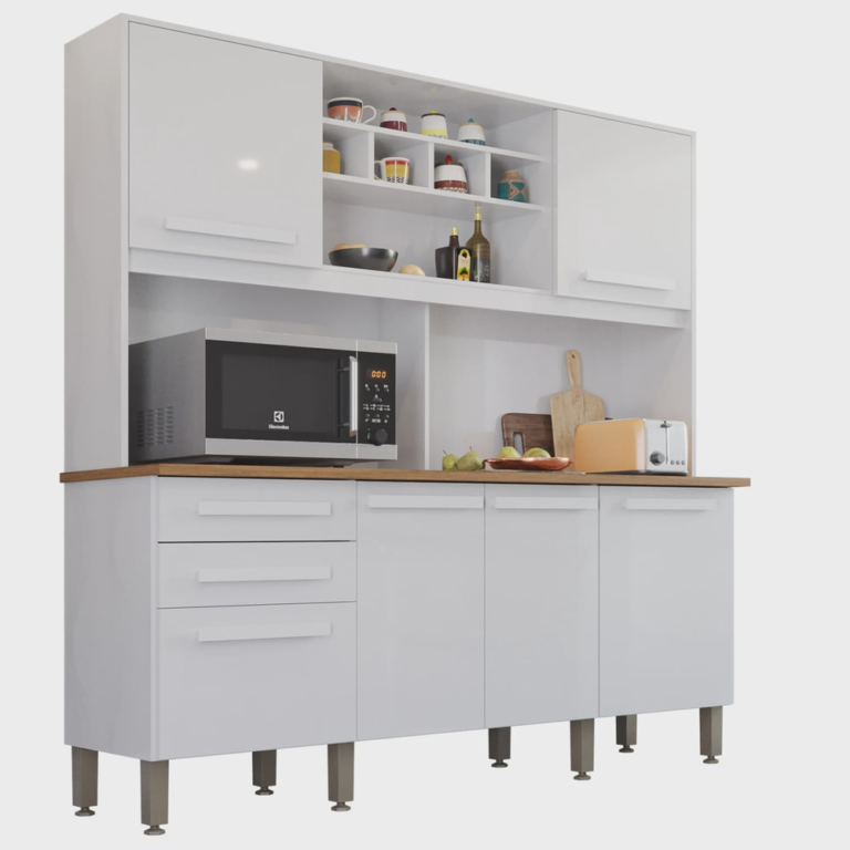 Armário para Cozinha 5 Portas 1 Gaveta com Nicho para Microondas Athena
