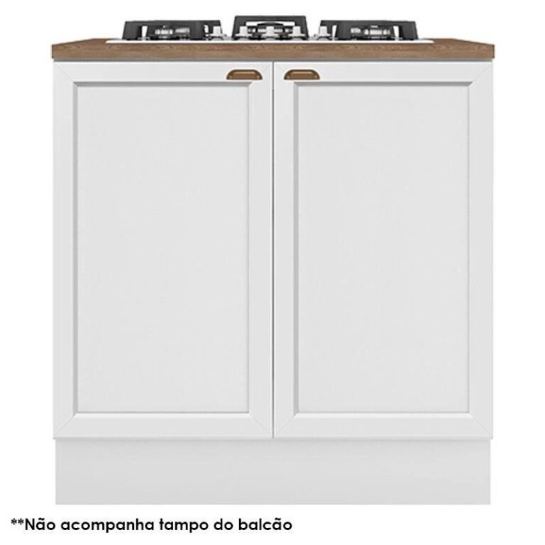 Balcão Cozinha Com Tampo 1,20m Top Class 2 Portas 3 Gavetas Branco Brilho Batrol