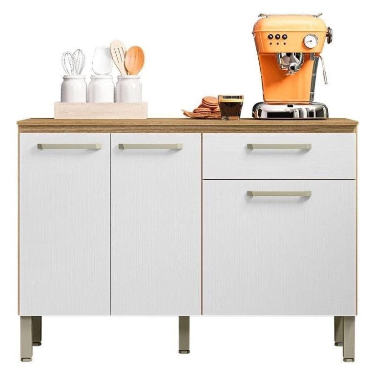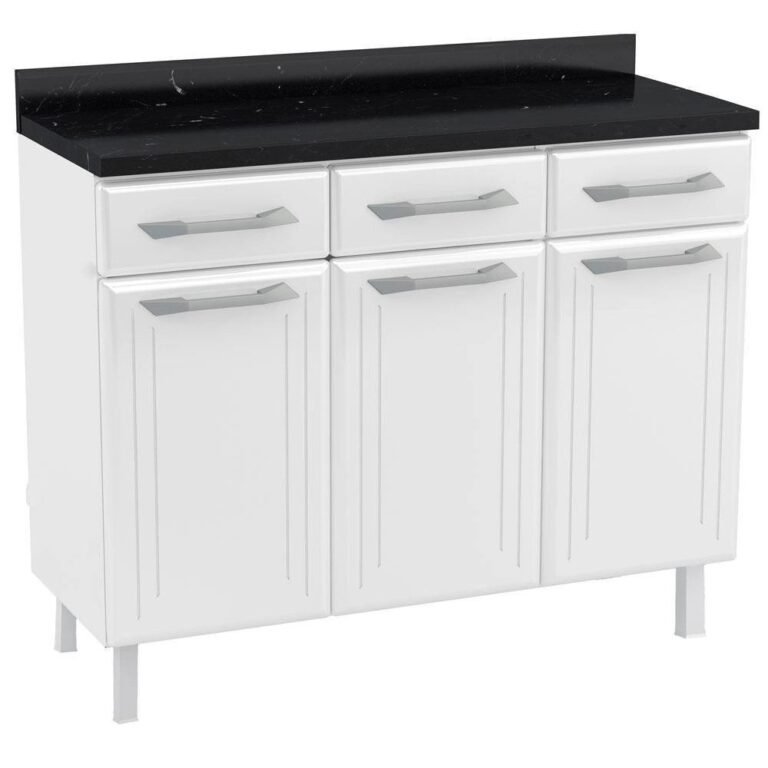 Balcão Gabinete Gabriela com Pia Inox 120cm 3 Portas Branco/Preto – ajl Móveis