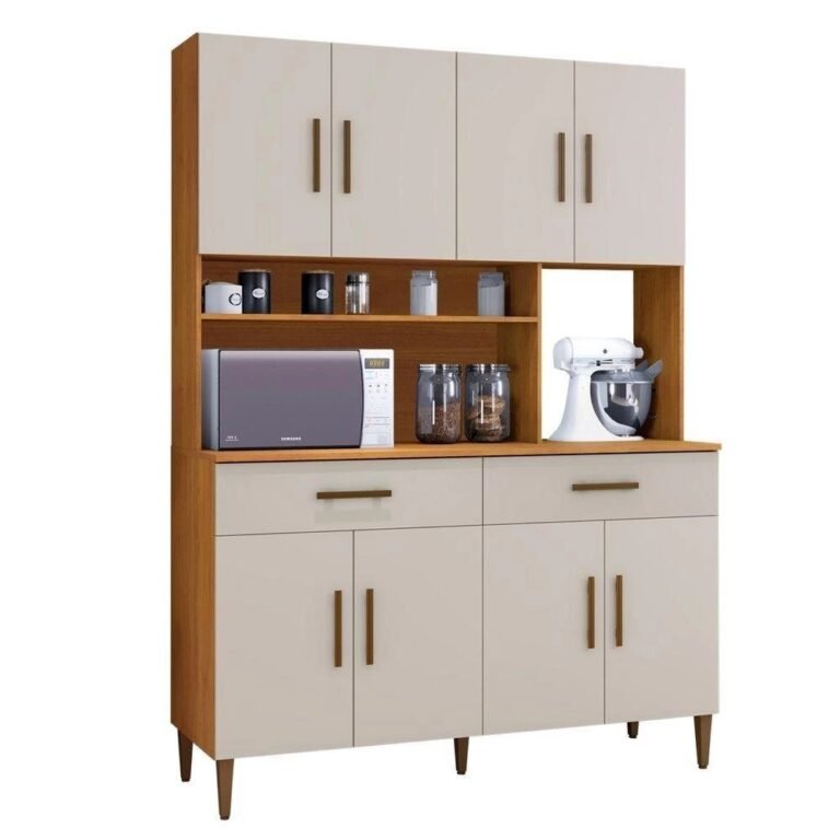 Armario De Cozinha 8 Portas 2 Gavetas Fortaleza Kaiki Moveis NatureOff White