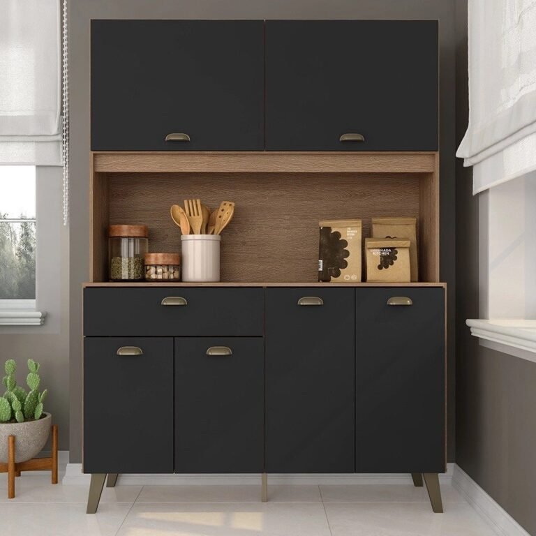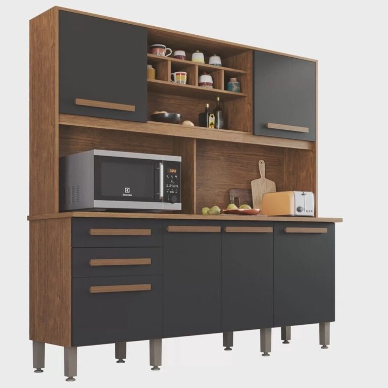 Armário Kit De Cozinha Emily Retro 6 Portas Carvalho/preto Fosco – Ma