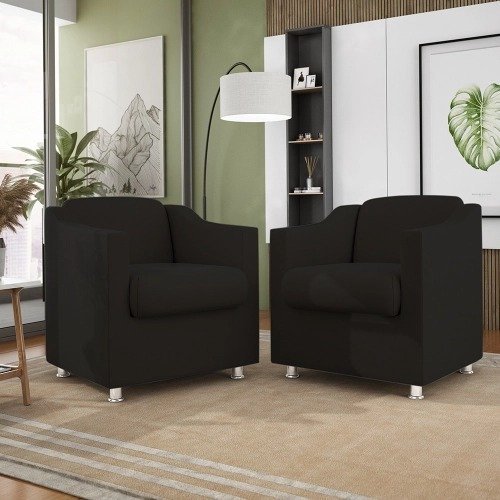 Kit 2 Poltronas Decorativas Tilla Consultório Recepção Sala Suede Preto