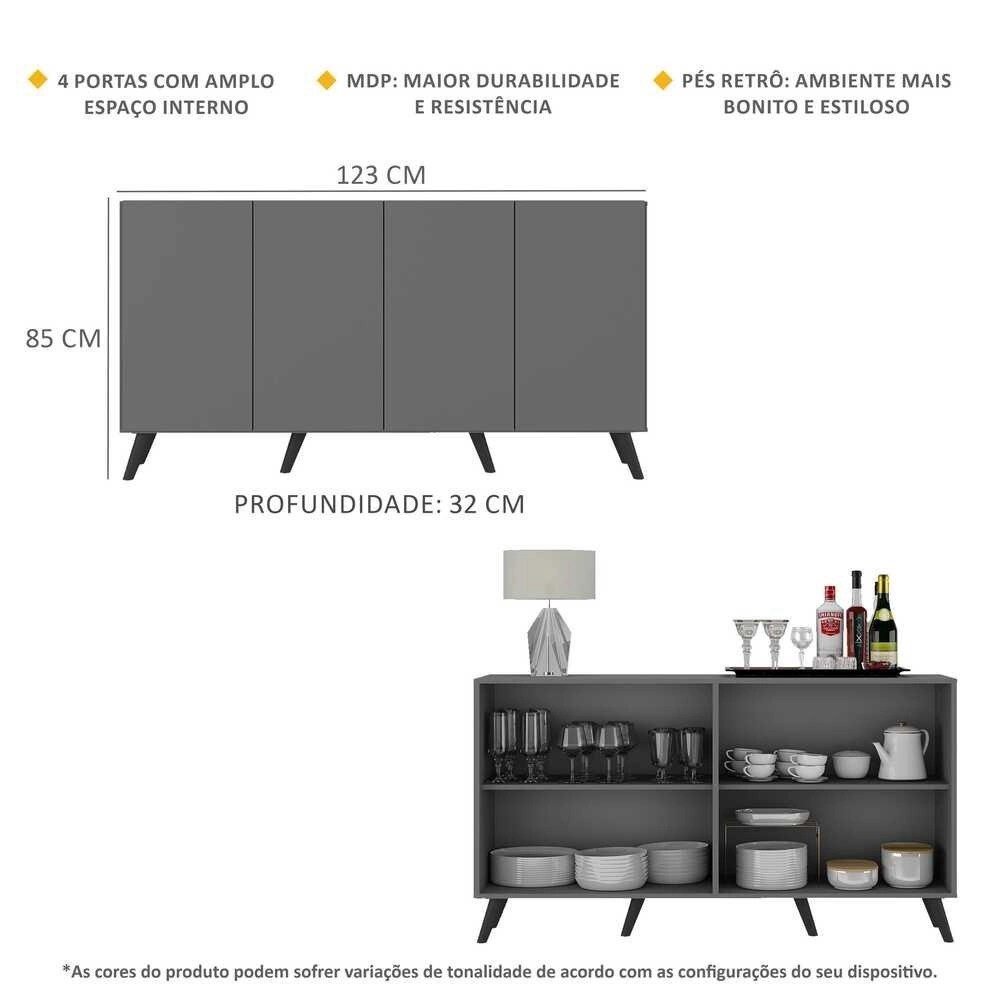 Aparador Buffet 4 Portas com Pés Retrô Veneza Multimóveis GrafitePreto