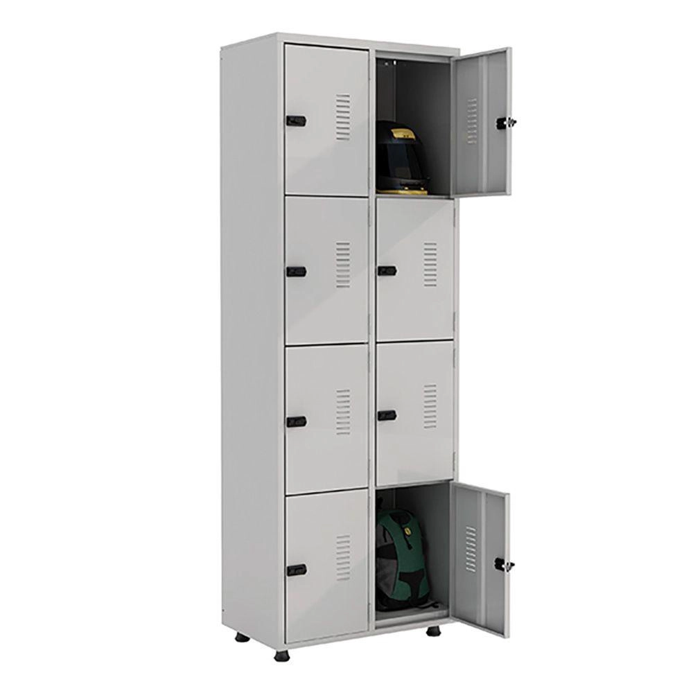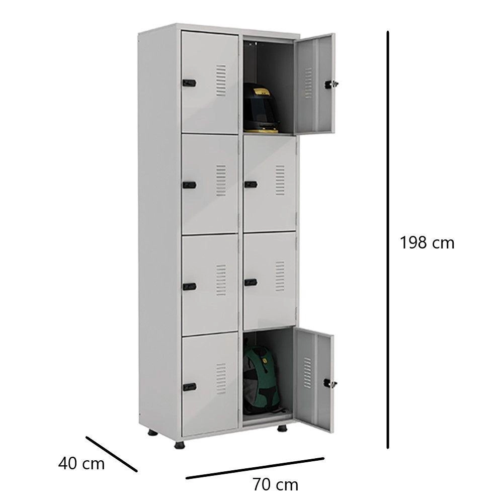 O Armário Roupeiro de Aço 8 Portas Vestiário Academia Guarda-Volumes com trinco para cadeados é perfeito para alojamentos, escritórios, almoxarifados, laboratórios, hospitais, farmácias, depósitos, academias, supermercados, vestiários, e diversos outros ambientes.
