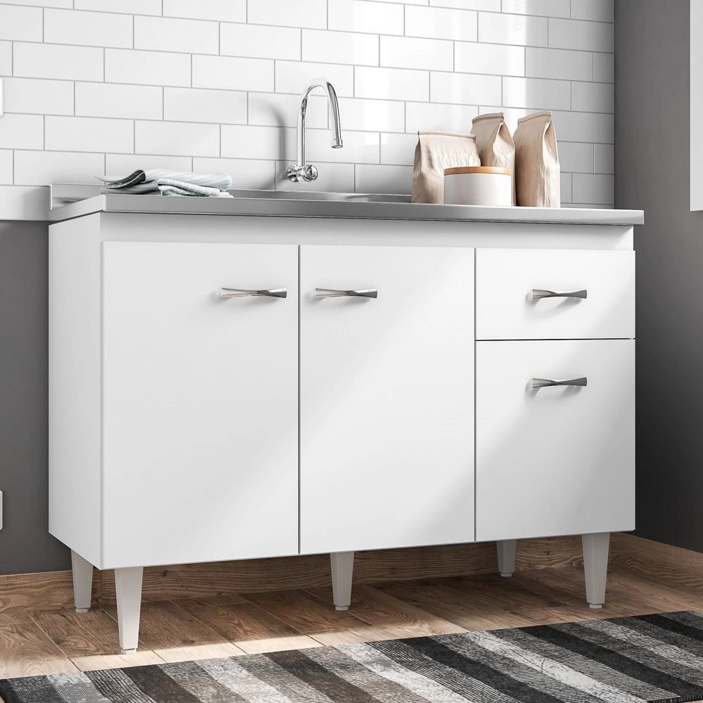 O Balcão Gabinete Com Pia Inox 120cm Gabriela da ajl Móveis é uma excelente peça para ser utilizada na sua cozinha e organizar seus utensílios. Conta com estrutura em mdp/mdf, 3 portas convencionais com amplo espaço interno e 1 gaveta para melhor auxiliar nessa tarefa, além disso, seu acabamento em pintura uv garante maior durabilidade e resistência. Outro diferencial são os pés reguláveis que facilitam a posição do móvel. Um charme, não é mesmo?