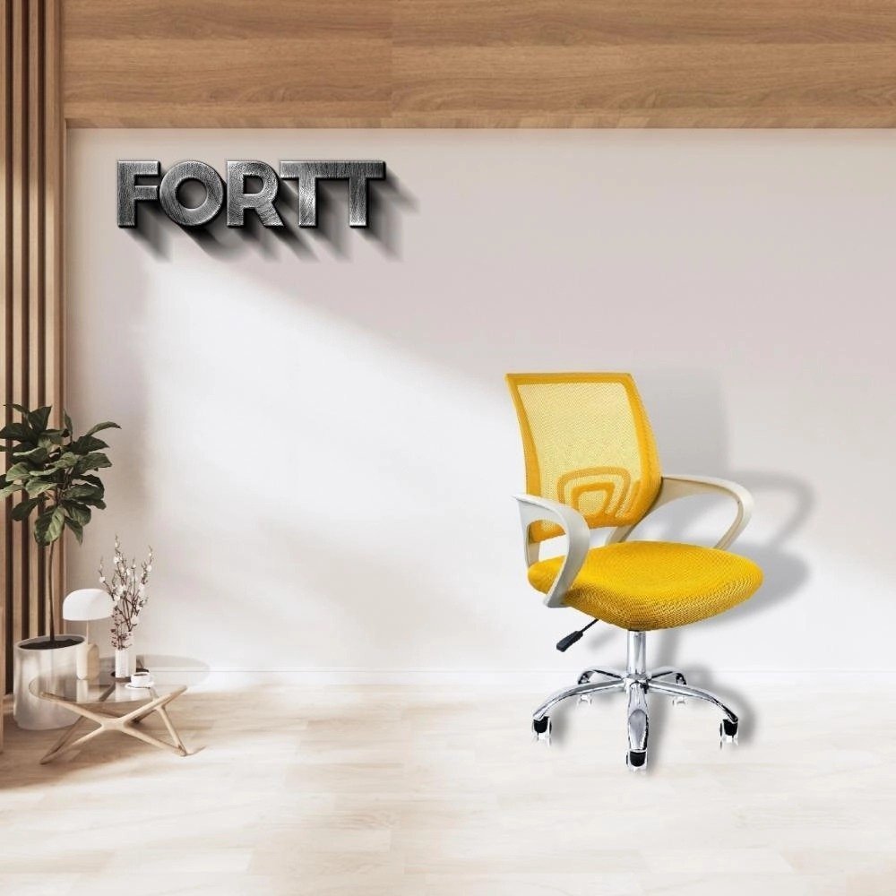 Cadeira de Escritório Secretária Base Cromada com Rodinha Fortt Lisboa Amarela – CSF02-AM