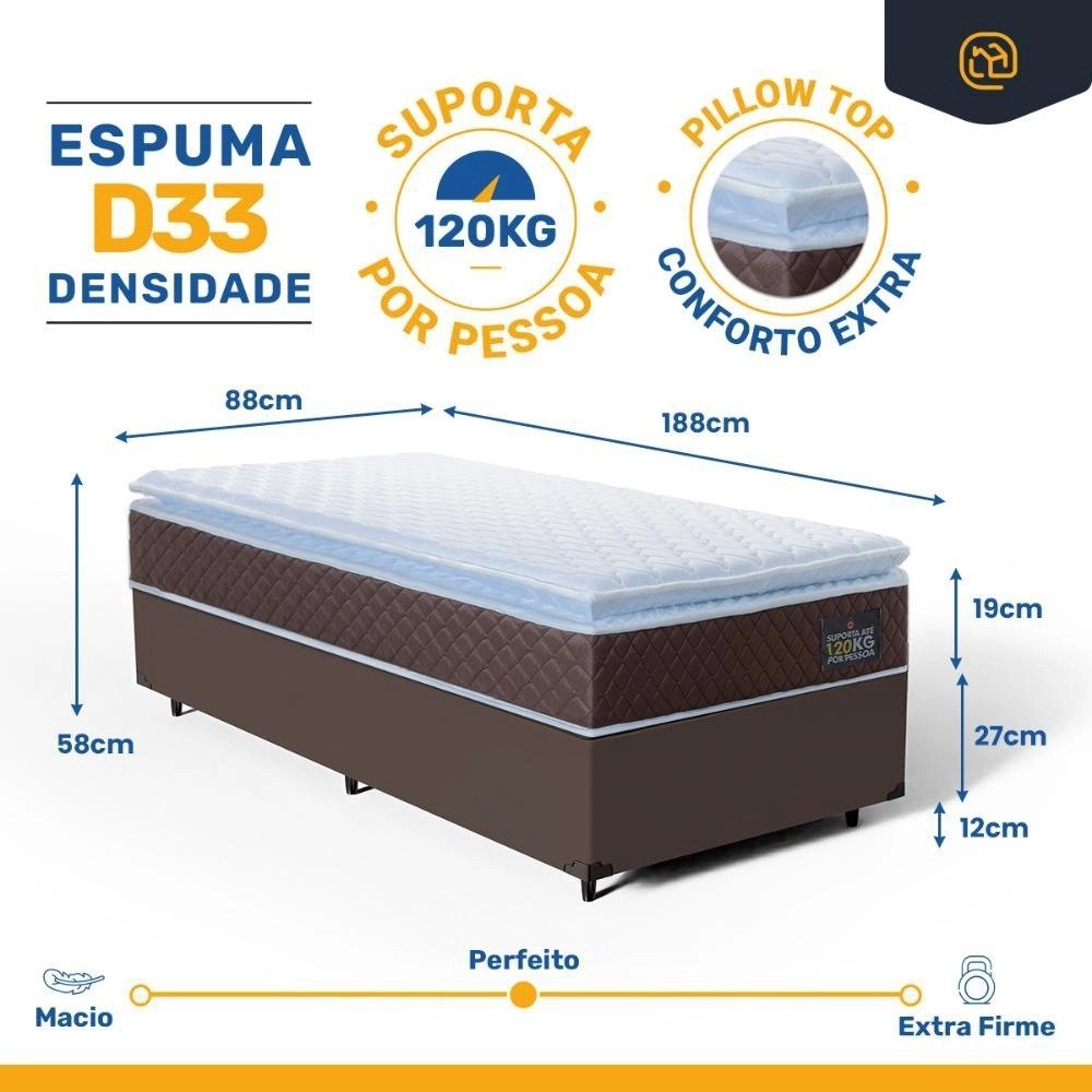 O pillow top adiciona uma camada plush ao colchão, ideal para quem precisa de um pouco mais de maciez sem comprometer o suporte ortopédico. Com capacidade para suportar até 120Kg por pessoa, este colchão é robusto e durável, garantindo que você desfrute de um investimento em descanso de longa duração. Cada detalhe é projetado para melhorar sua saúde e conforto noturno.