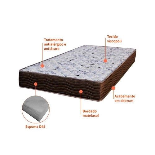 Colchão Solteiro de Espuma D45 Iso (18x78x188) Marrom