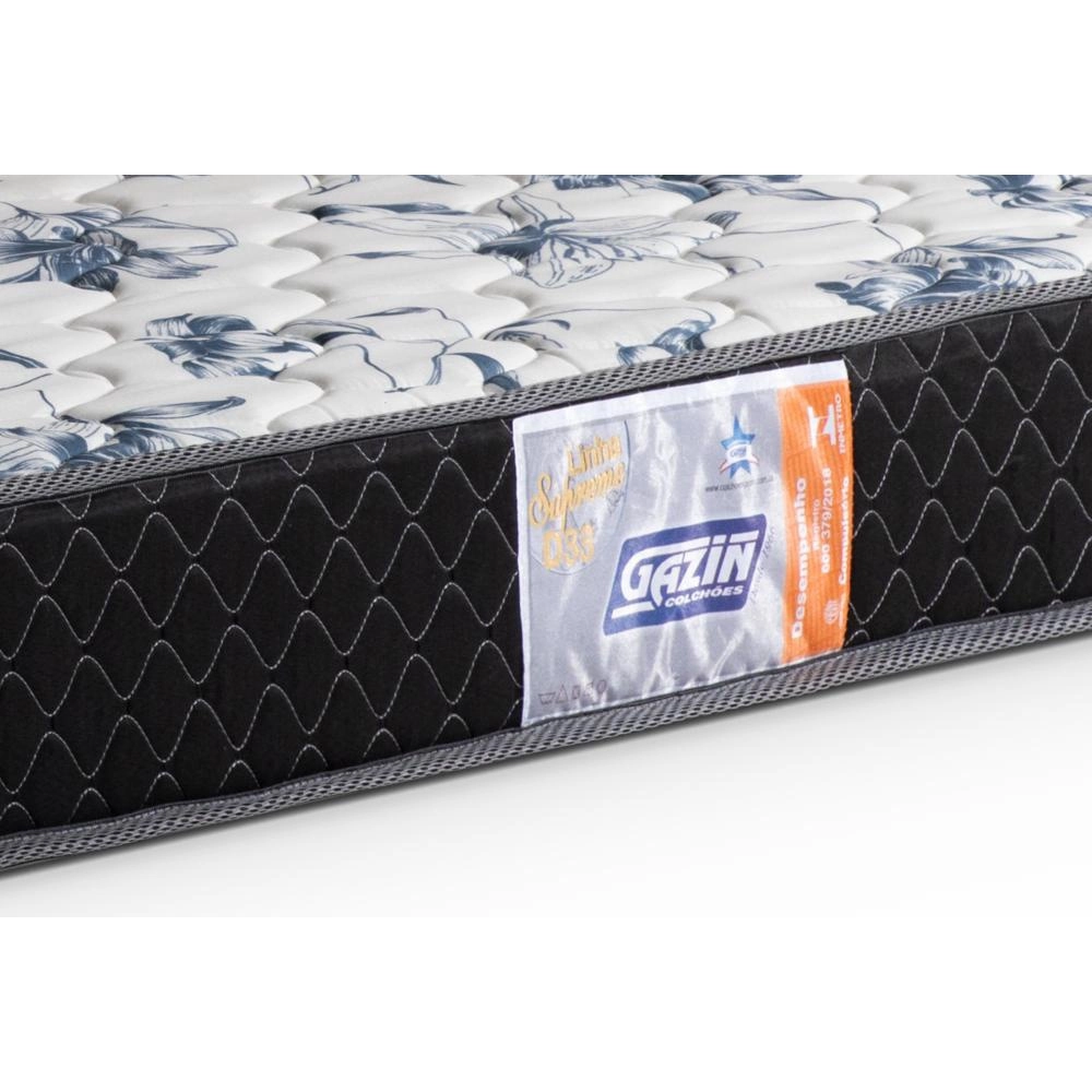 A linha de Colchões Gazin Supreme, traz o essencial em um colchão de espuma. Produzido com espuma de densidade 33, o Gazin Supreme alinha comodidade, conforto e confiabilidade em um só colchão. Certificado pelo Inmetro e exposto a vários testes de qualidade, entregamos o melhor de nós a você. Revestimento superior, inferior e lateral em tecido poliester, tecido 100% sintético. Por ser sintético não é propenso ao acúmulo de poeira e materiais orgânico, além de ser de fácil higienização. Espuma flexível convencional poliuretana, material sintético e de baixa deformação permanente.