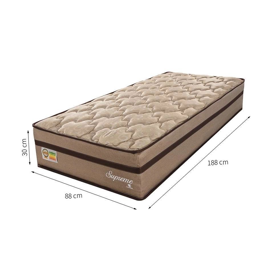 Que tal o Colchão Supreme? Uma boa base box só está completa se você escolher o colchão certo para os seus momentos relax. Cheio de benefícios para o seu corpo, o modelo Supreme reúne características que vão fazer dele o item fundamental para dias descansados e mais produtivos: as molas ensacadas distribuem melhor o peso quando mais de uma pessoa se deita na cama, enquanto o pillow top, uma aplicação feita na parte de cima, se destaca por garantir uma maciez extra à peça. Para complementar o uso, é só aliá-lo a um nbsp; Bom conjunto de lençol e travesseiro e ter aquela noite de sono que você sempre quis!