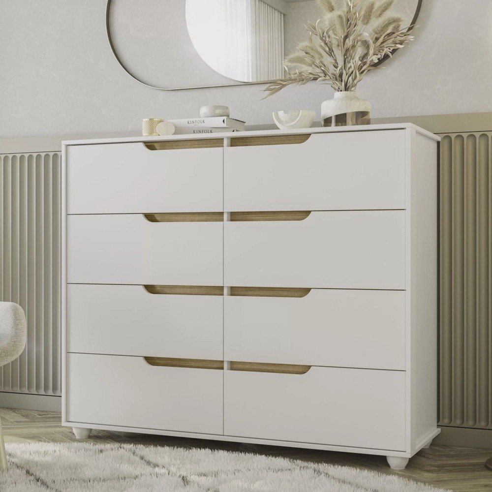 Com suas 8 gavetas espaçosas, a Cômoda Doble oferece amplo espaço de armazenamento para atender às suas necessidades diárias. Seja para guardar roupas, acessórios ou objetos pessoais, você terá espaço de sobra para manter tudo em ordem. Além disso, as gavetas deslizam suavemente, facilitando o acesso e tornando o uso do móvel ainda mais prático.