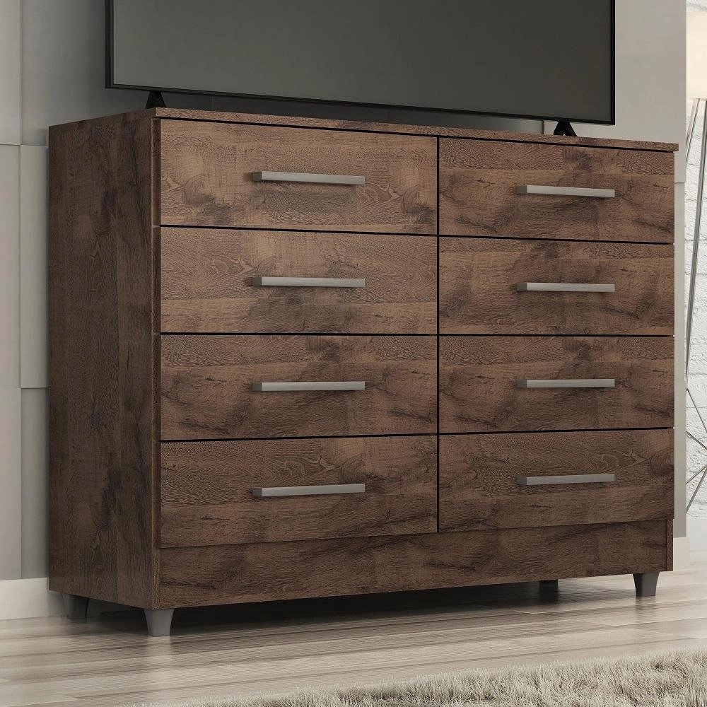 Cômoda raissa Com 8 gavetas dispõe de um design sofisticado é própria para pessoas exigentes com organização. As gavetas possuem corrediças metálicas, fazendo assim com que a gaveta não caia na hora que você for utilizar, evitando acidentes com crianças. O móvel suporta pesos de até 7kg em suas gavetas e 20kg no tampo suficiente para acomodar televisores, além disso acompanha pezinhos para melhor limpeza e durabilidade do produto. As gavetas são espaçosas e comportam um bom volume de roupas e acessórios em seu interior. Possui acabamento Touch Alto-Relevo ou Alto Brilho uv e Semibrilho parte interna. Tem um design moderno que ao mesmo tempo atende muito bem as reais necessidades de uma ou duas pessoas. Além desses detalhes é de fácil montagem. Altura 0,90m x Largura 1,10m x Profundidade 0,40m x Peso 37kg