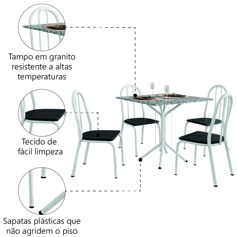 modelo: Conjunto Sala De Jantar Mesa Thais Com 4 Cadeiras Diva 0,70m Granito