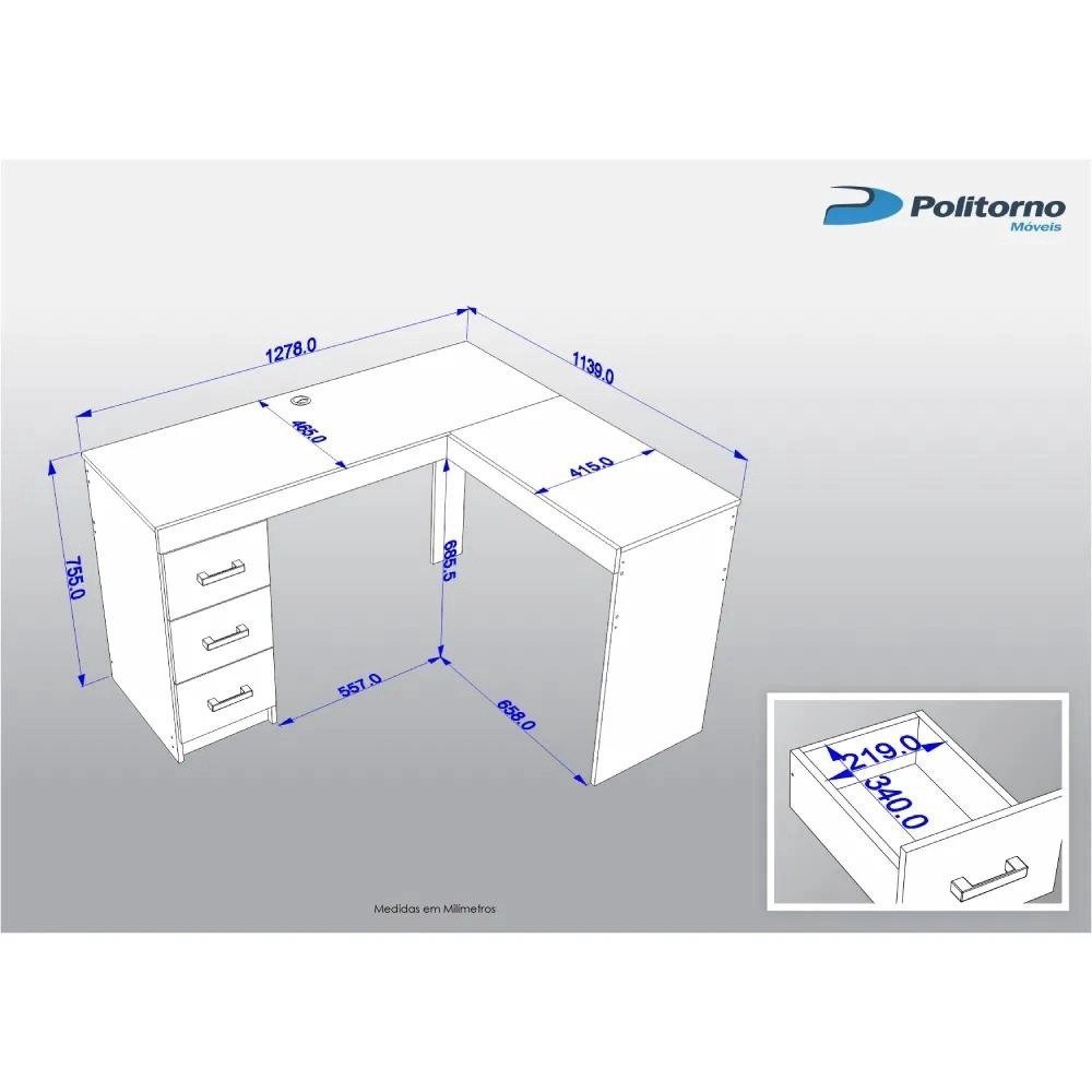 | Nome do simples no fornecedor | Escrivaninha para Escritório Fênix em L com 3 Gavetas – Castanho |