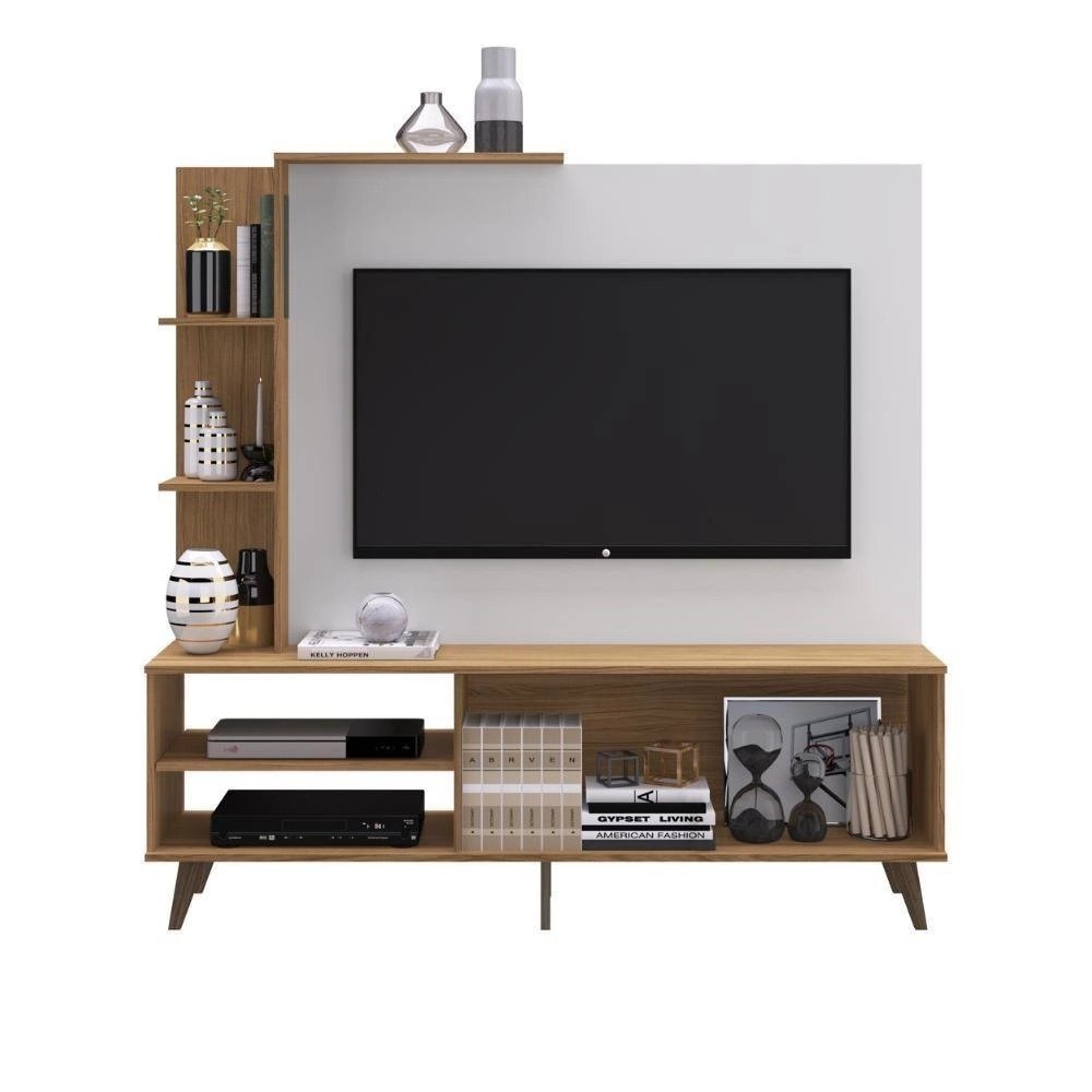 Estante Home Tv Até 55 Polegadas Retrô Decibal Naturalle Branco Off