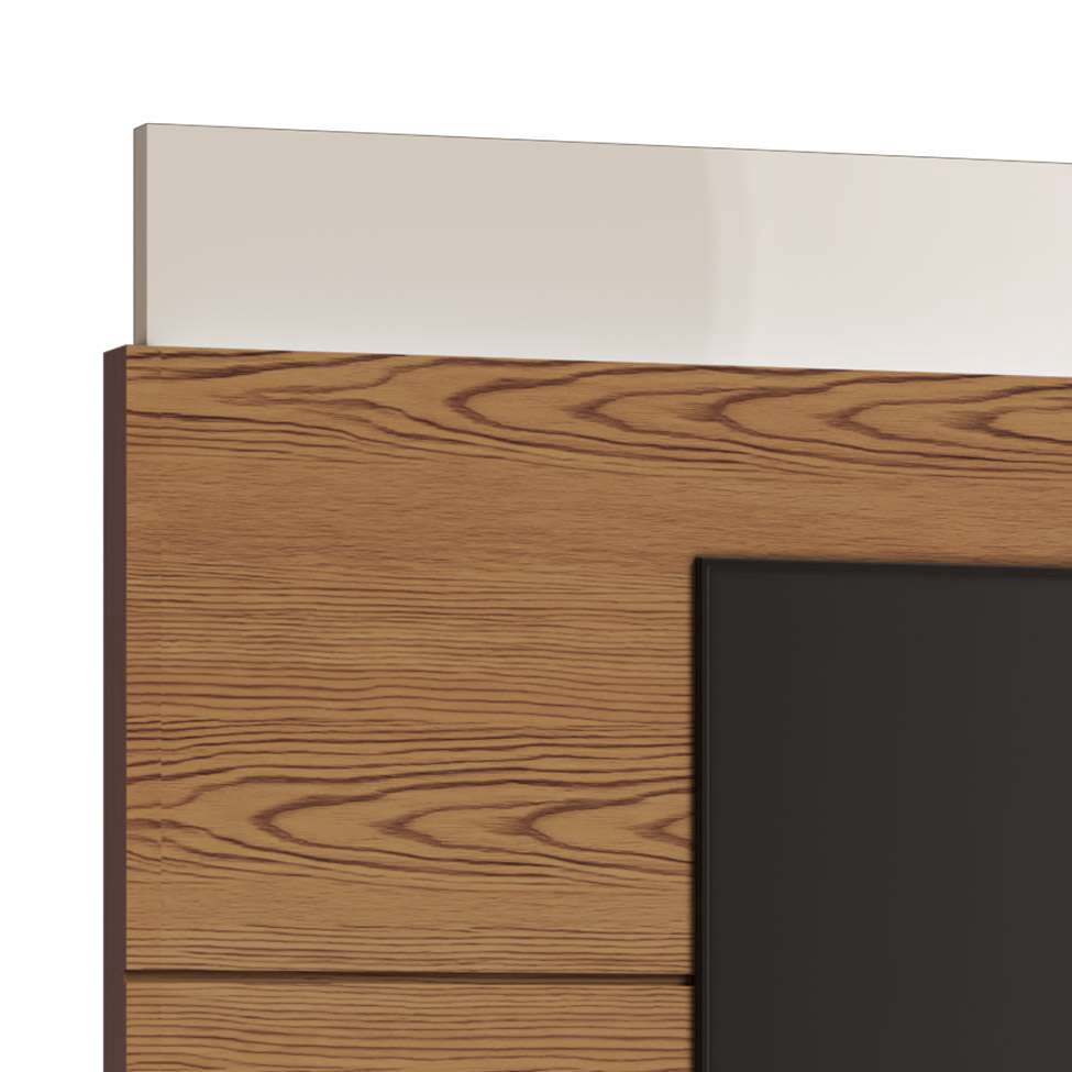 Rack com Painel Requinte Retrô 2.2 Ripado 3D com Led Requinte Naturale com Off White - Gelius Móveis