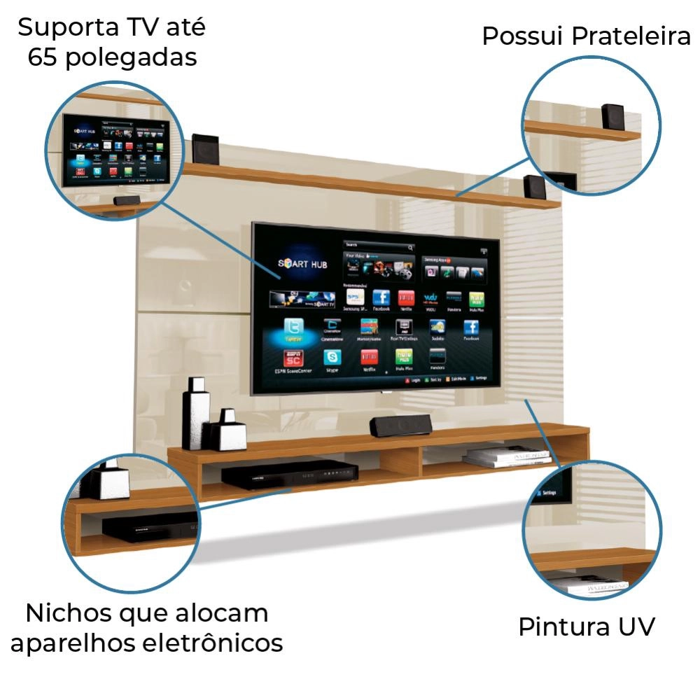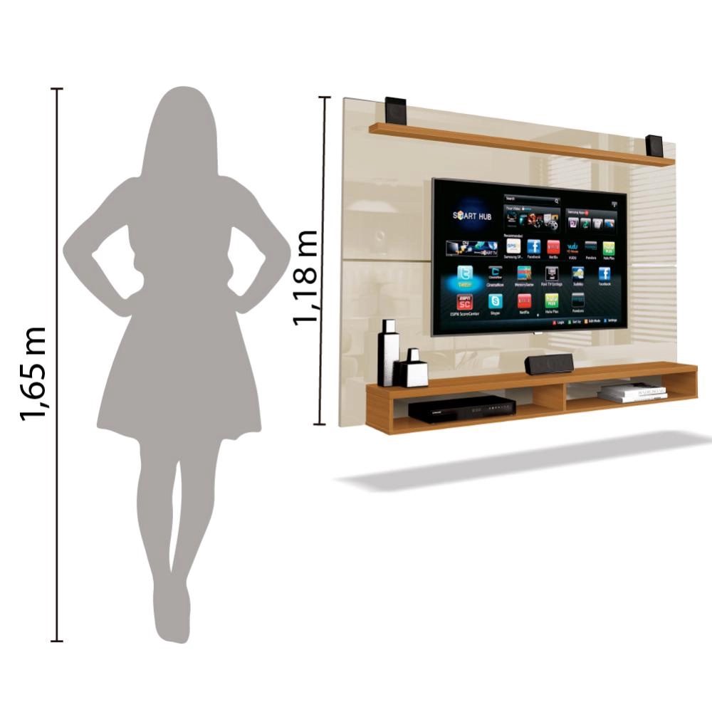 | Modelo | Painel Para TV Até 65 Polegadas Com Prateleira 1,80m Max Cedro/Off White |