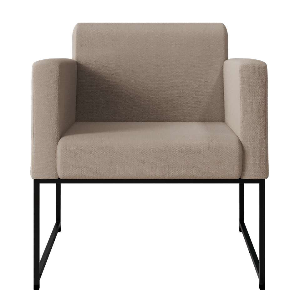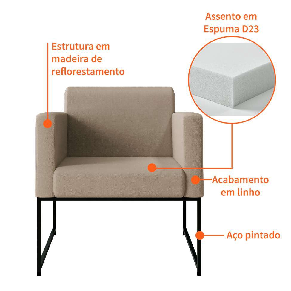 Material6221 Poltrona Sara é composta por madeira de reflorestamento 25 mm, assento e encosto com enchimento em espuma D26, pés em aço pintado, acabamento liso, revestimento em linho