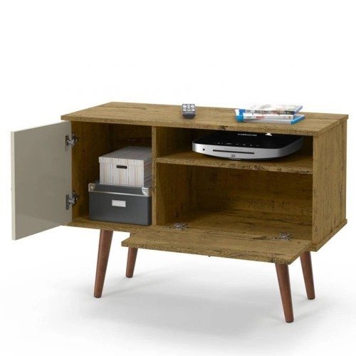 O Rack Yan da Patrimar possui um design retro que agrega muito para o seu ambiente. Possui duas portas perfeitas para guardar seus melhores pertences, sendo uma delas basculante, dando um diferencial para o móvel.