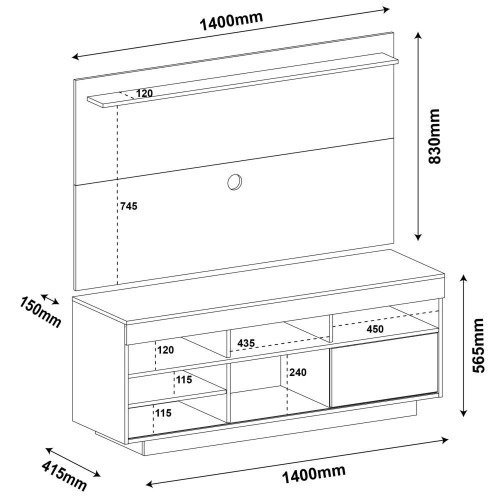 Rack com Painel para TV de Até 47″ Roma – Artely